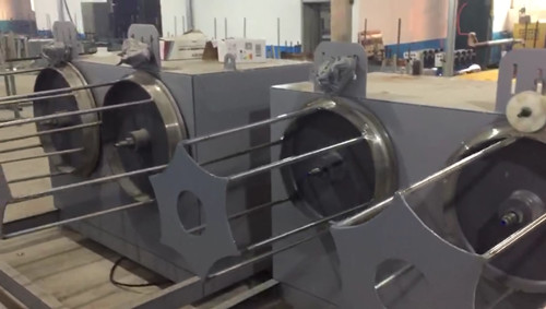 為使退火不銹鋼盤管快速冷卻,退火爐設置水冷箱,內部安裝不銹鋼管作冷卻管,退火管材通過冷卻,可獲得過飽和不銹鋼固溶體,達到工藝要求的硬度和光亮度。在水冷箱的后部設置了特殊收卷機組。退火后管材可盤式卷取,內設防止管材內孔氧化的氫氣保護輸入裝置,在卷取的同時向管材內孔送入氫氣進行保護,退火管材內外光亮度。